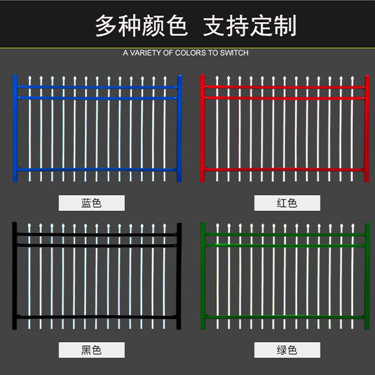 锌钢围墙护栏又称锌钢护栏锌钢围墙栅栏安装方法有两种,一种是把栏杆放进U型连接件里面,先用膨胀栓固定一根立柱,使横杆立柱相连接,再把防盗螺栓穿过U型连接件,另一种是预埋立柱安装,安装时把立柱2-30cm埋入松软的地面,然后灌入水泥砂浆即可。